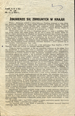 Rozkaz Dowódcy Armii Krajowej nr 126 z 12 stycznia 1944 r. zapowiadający otwarte wystąpienie zbrojne we współpracy z Sowietami przeciwko Niemcom, ale piętnujący dotychczasowe antypolskie działania sowieckie i rozbudowę armii Zygmunta Berlinga, ze zb. Marka Ney-Krwawicza