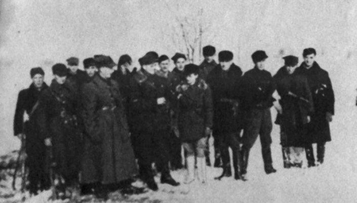 Oficerowie sztabu 27. WDP AK wśród żołnierzy kompanii łączności,