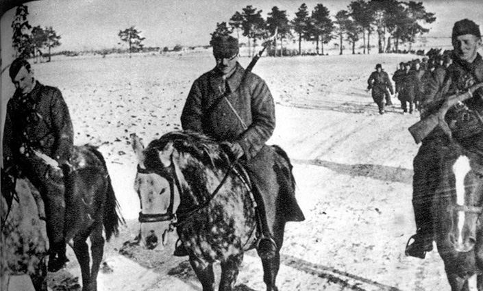 Żołnierze I batalionu kpt. Michała Fijałki „Sokół” w 50. pp 27. WDP AK w marszu,
