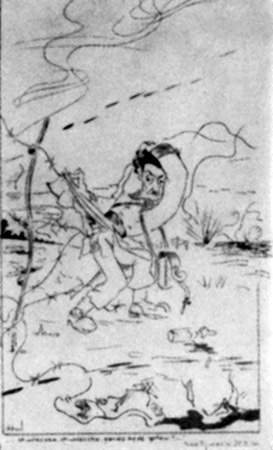 Lekarz dywizyjny por. Grzegorz Fedorowski „Gryf” 27 maja 1944 r. w czasie forsowania zasieków nad Prypecią, autor karykatury nieznany, ze zb. Światowego Związku Żołnierzy Armii Krajowej Okręg Wołyń