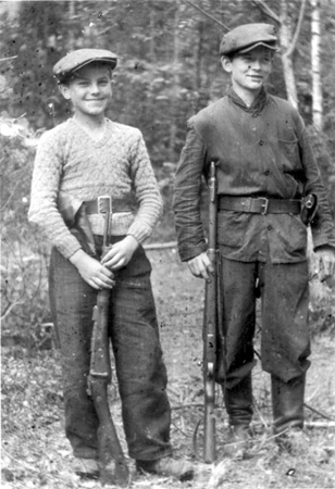 Najmłodsi żołnierze 30. PDP Armii Krajowej, z lewej Ryszard Terpiłowski „Orlik”,