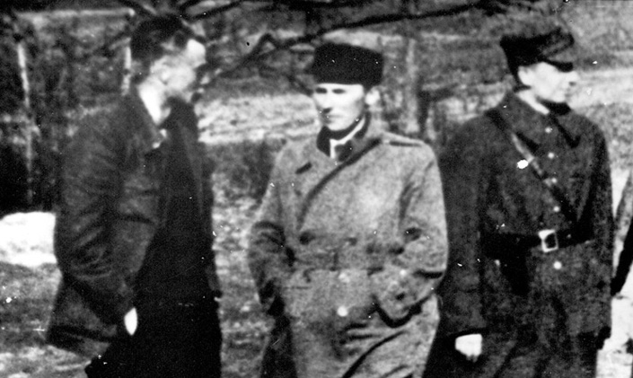 Dowódca III batalionu 77. pp AK por. Bolesław Piasecki „Sablewski” z ppor. Anatolem Rymaszewskim „Andrzej” i kpt. Zygmuntem Dziarmaga-Działyńskim „Józef”, 1944; ze zb. Muzeum Armii Krajowej Okręgu Wilno „Wiano”