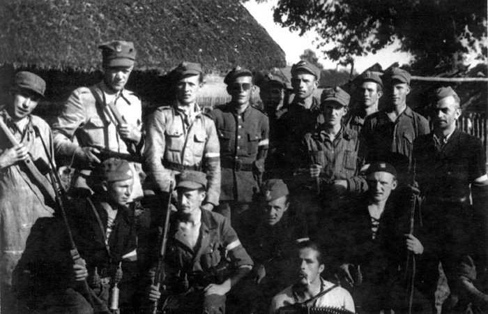 Żołnierze 7. Brygady „Wilhelma” na postoju w Popiszkach, czerwiec 1944,