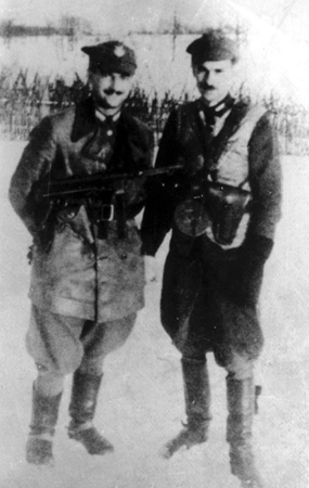 Por. Witold Turonek „Tur” (z lewej) dowódca 8. Brygady AK i por. Adam Walczak „Nietoperz” dowódca 13. Brygady AK, Giejstuny, marzec 1944, ze zb. Muzeum Armii Krajowej Okręgu Wilno „Wiano”