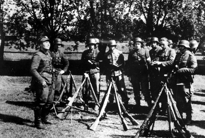 Instruktaż dla żołnierzy 8. Brygady Wileńskiej w czasie szkolenia;