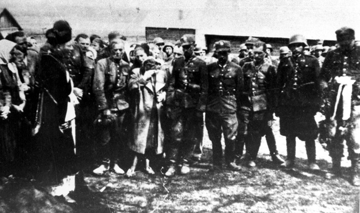 Ksiądz przemawiający nad mogiłą do żołnierzy 13. Brygady Wileńskiej;