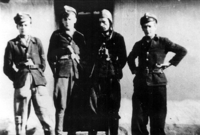 Żołnierze oddziału leśnego 8. kompanii 26. pp w Milczycach, od lewej Bolesław Lipski „Wojak”,