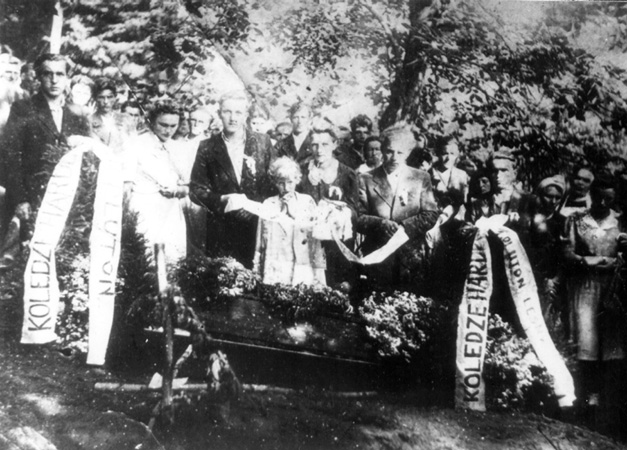 Pogrzeb st. uł. Kazimierza Ostrowskiego „Hardy” z oddziału leśnego 2. szwadronu 14. p. uł. Jazłowieckich w Czyszkach, za trumna siostra poległego i sanitariuszka Jadwiga Łamaszówna „Wisia”, fot.