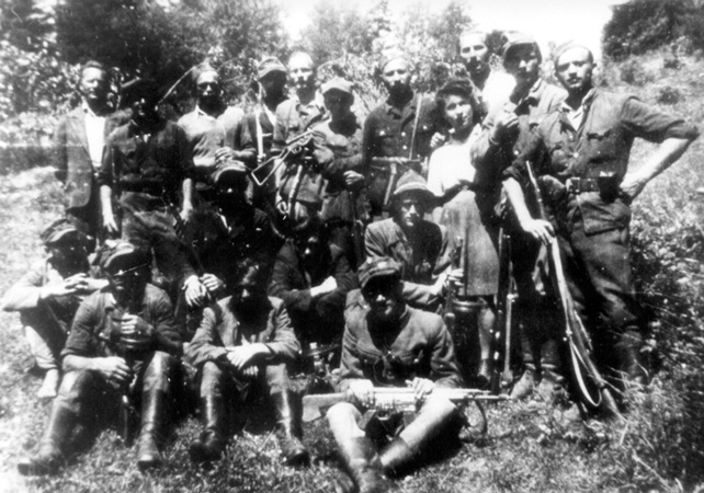 Stoją od lewej pierwszy kpr. Skrabek „Doktorek”, piąty kpr. Wacław Obertyński „Topór”, siódmy st. sierż. NN „Czarny Sęp”, Krystyna Dąbrowska „Jaś”, za nią ppor. Stanisław Popławski „Flis”, ostatni plut. Skrzyszewski „Bolko”, klęczy za siedzącymi J. Banachowski „Turno” (w kapeluszu), siedzą ostatni z prawej por. Tomasz Matyszewski „Ćwikła” i pchor. Atamaniuk „Babinicz”, ze zbiorów Światowego Związku Żołnierzy Armii Krajowej Obszar Lwów |