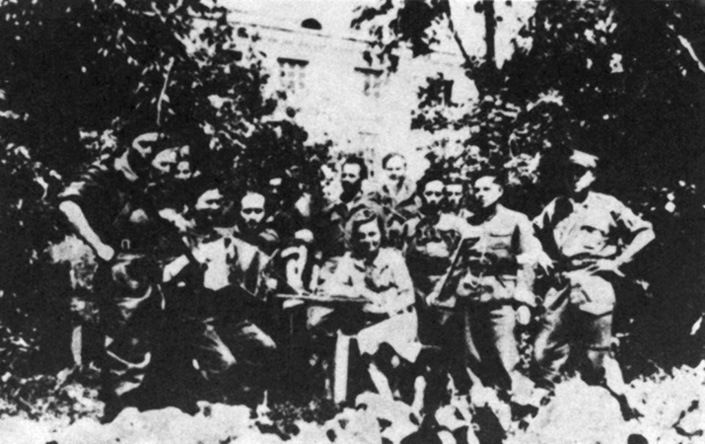 Grupa żołnierzy batalionu „Krwawa Łuna” 27. Wołyńskiej Dywizji Piechoty AK, Szczebrzeszyn, lipiec 1944, ze zb. Światowego Związku Żołnierzy Armii Krajowej Okręg Wołyń