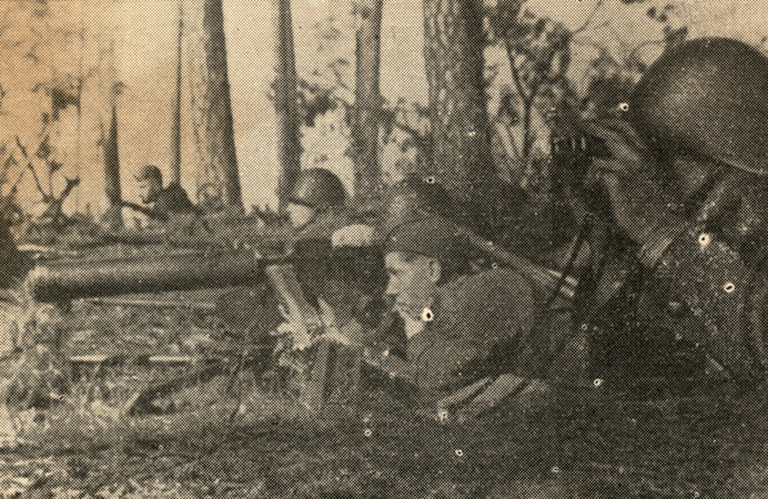 Jeden z ckm 9. pp AK na stanowisku ogniowym, fotografia opublikowana w dodatku ilustrowanym do „Biuletynu Informacyjnego”, ze zb. M. Ney-Krwawicza |