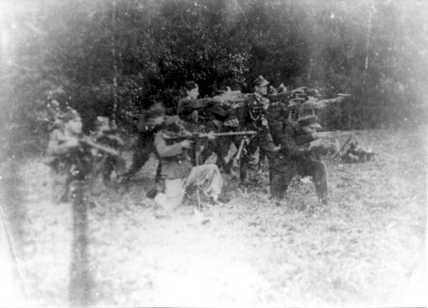 Oddział Aleksandra Rusina „Rusal” „Olek” (stoi w środku w oficerskiej czapce), ze zb. Andrzeja Zagórskiego |