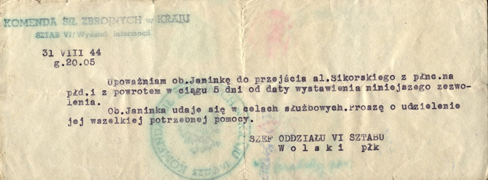 Przepustka dla łączniczki, ze zb. Marka Ney-Krwawicza