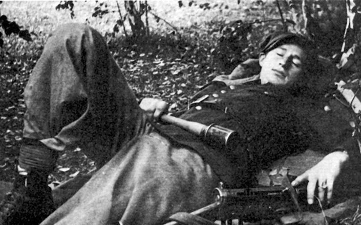 Szybka drzemka ze Stenem i granatem pod ręką, sierpień 1944, fot. Jan Jakóbiec, J. Jakóbiec, R. Wójcikowski, My Armii Krajowej Żołnierze, Warszawa 1992