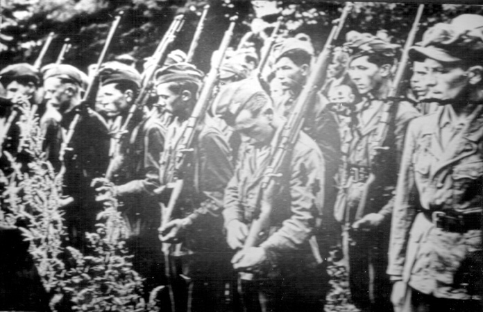 Pluton Władysława Smaczyńskiego „Podstawka” na pogrzebie dowódcy, Probołowice, 27 lipca 1944,