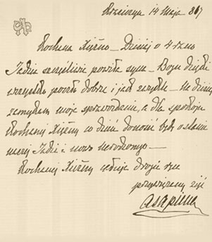 z Lubomirskich Sanguszkowej napisany w dniu narodzin Adama Stefana 14 maja 1867 r.