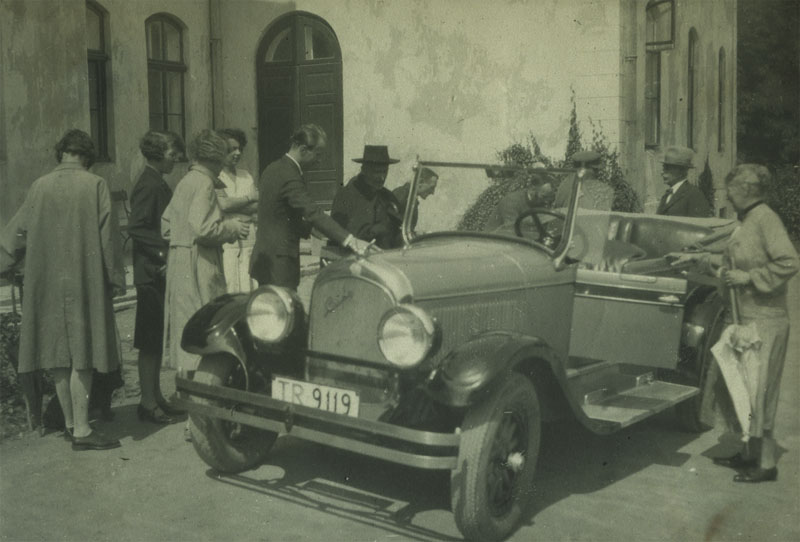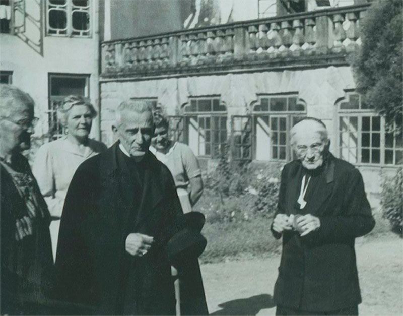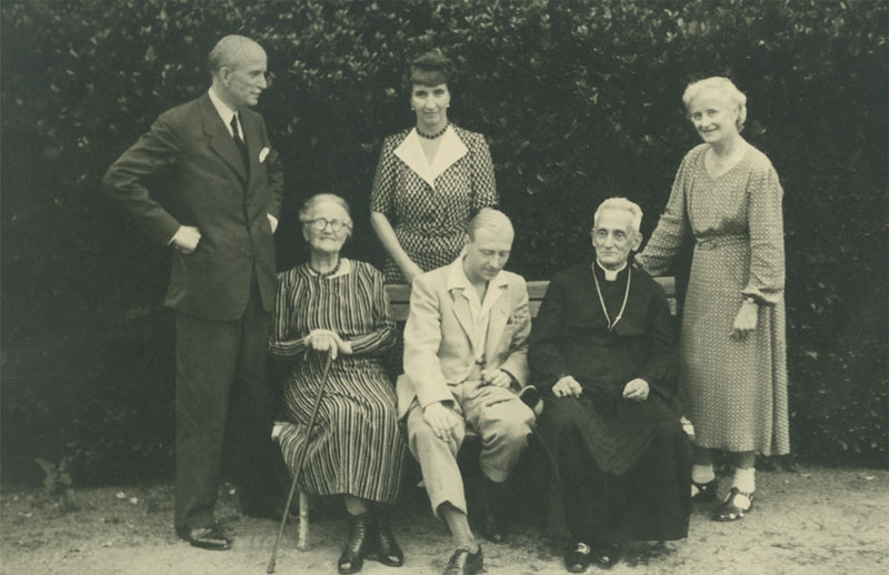 Od lewej: Paweł Florian Sapieha, Teresa Leonowa Sapieżyna, Maria Oppersdorf Pawłowa Sapieżyna, Wacław Hilary Bniński, Adam Stefan Sapieha, Jadwiga z Sapiehów Szembekowa, Merano, sierpień 1948 r.