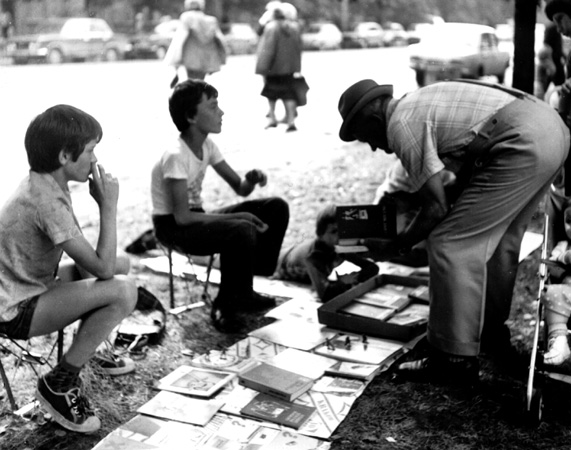Dzieci handlujące używanymi książkami.