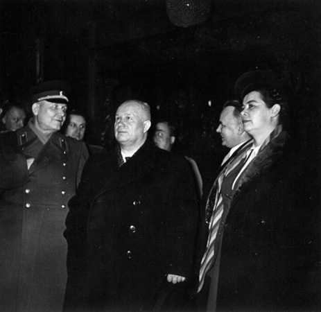 Koniew, Chruszczow i I sekretarz KC Komunistycznej Partii Ukrainy Olga Iwaszczenko z wizytą