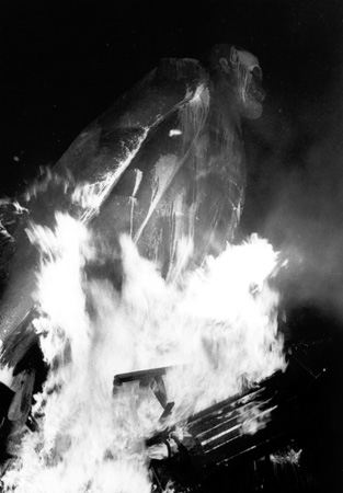 Płonący pomnik Lenina 6 grudnia 1989 r.; fot. Andrzej Stawiarski.