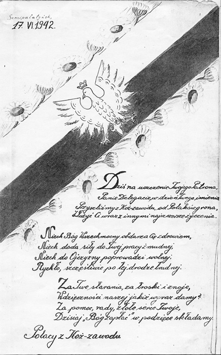 Pismo gratulacyjne z okazji imienin Adolfa Saranieckiego.