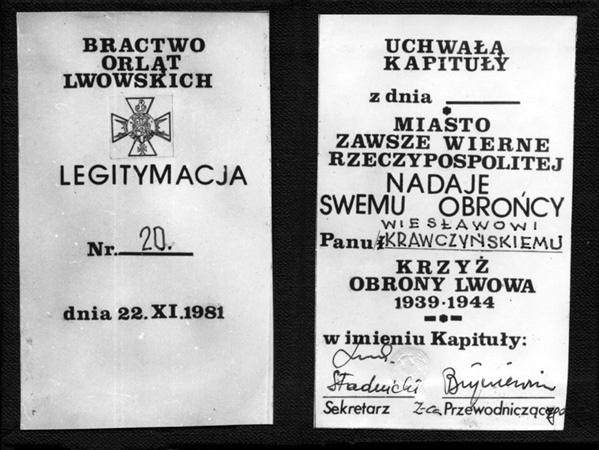 Legitymacja Krzyża Obrony Lwowa 1939–1944.