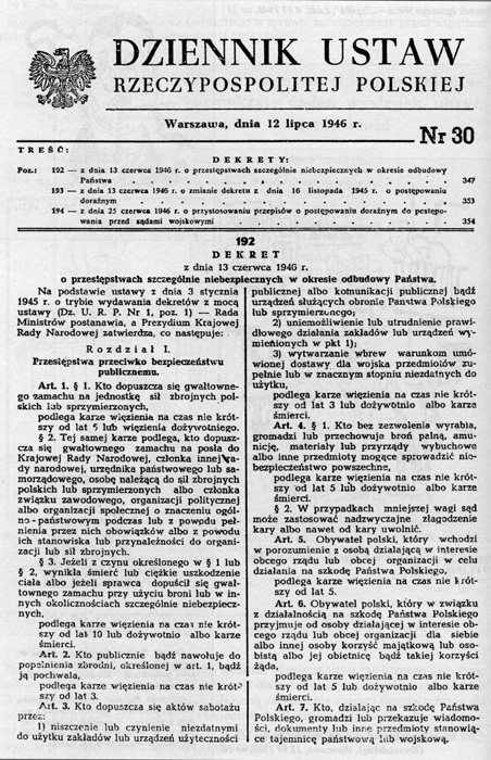 Dekret z dnia 13 czerwca 1946 r. o przestępstwach szczególnie niebezpiecznych w okresie odbudowy Państwa – nazywany Małym Kodeksem Karnym (MKK). Kolejna wersja dekretu z 16 listopada 1945 r. (Dziennik Ustaw 1946, nr 30, poz. 192).