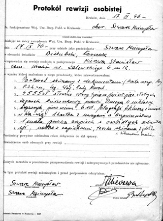 Protokół rewizji domowej, przeprowadzonej 18 września 1947 r. w siedzibie Zarządu Wojewódzkiego PSL