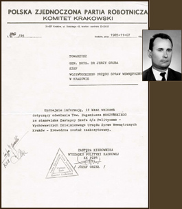 | Odmowa Komitetu Wojewódzkiego PZPR w Krakowie zatwierdzenia Stanisława Musiała na szefa PUBP w D±browie Tarnowskiej | System nomenklatury w stosunku do kluczowych zdaniem partii stanowisk w aparacie represji utrzymał się do końca PRL-u |
