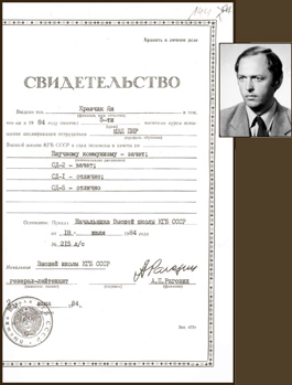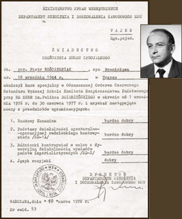 | Świadectwo ukończenia przez Piotra Kościelniaka kursu specjalnego w szkole KGB w Związku Sowieckim | Świadectwo ukończenia przez Jana Krawczyka kursu specjalnego w szkole KGB w Związku Sowieckim |