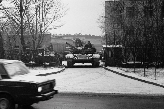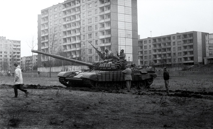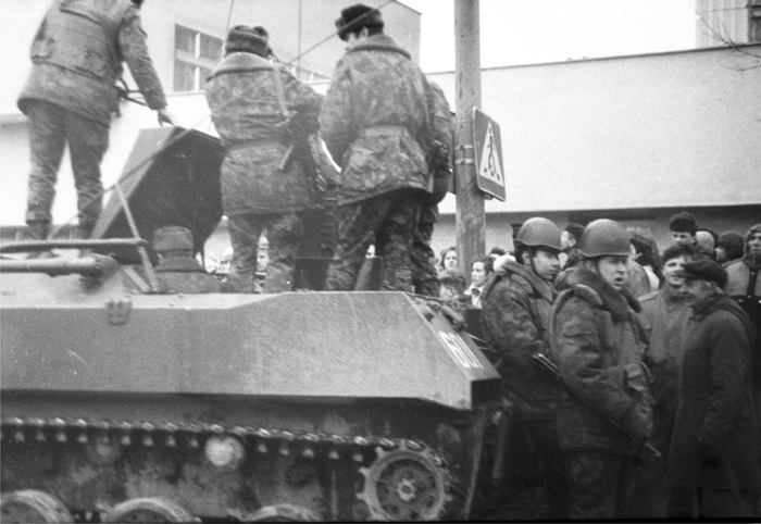 Dzisiaj mamy 11 stycznia, jadę do Domu Prasy. Synowi nakazuję, by w żadnym wypadku nie wychodził z domu. Koło Domu Prasy tłum ludzi, stoją sowieckie czołgi z lufami skierowanymi w stronę budynku. Kobiety usiłują nawiązać rozmowę z żołnierzami, przekonać ich, aby sprzeciwili się rozkazom strzelania do ludzi, ale twarze żołnierzyków są pozbawione uczuć, a wzrok tępy i nieobecny. Uświadamiam sobie, że są gotowi na wszystko.