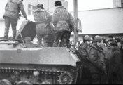 Zdarzenia potoczyły się tak szybko, że nie zdążyłam się opamiętać. Stałam w trzecim czy czwartym – ostatnim – rzędzie, przy samym wejściu do Domu Prasy. Jeden z czołgów oddał strzał. Straszliwy huk. Zauważyłam, iż dzieci, których było z siedmioro w pobliżu, z przerażenia rozpierzchły się na boki. Mimo dramatyzmu sytuacji ogarnął mnie głupi śmiech, gdy patrzyłam na uciekające dzieciaki. Dobrze, że się spłoszyły, ponieważ w następnym momencie rozpoczął się szturm na Dom Prasy.