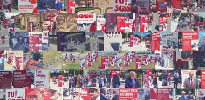 Spot zapowiadający wystawę IPN „Tu rodziła się Solidarność” na placu Piłsudskiego w Warszawie