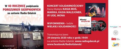Retransmisja#Pamięć. Sierpień’80: wyjątkowy koncert i prezentacja płyty w Radiu Gdańsk w 40. rocznicę powstania „Solidarności” – 29 sierpnia 2020