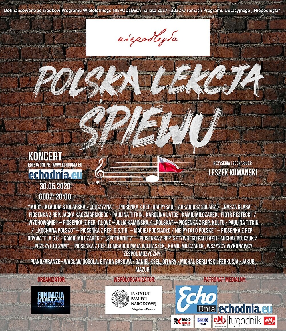 Zarejestrowany koncert można obejrzeć on-line. Premiera odbyła się 30 maja 2020 r. o godz. 20.00 na stronie internetowej IPN oraz profilu FB Delegatury IPN w Kielcach, a także stronie internetowej „Echa Dnia” oraz pism należących do grupy Polska Press.