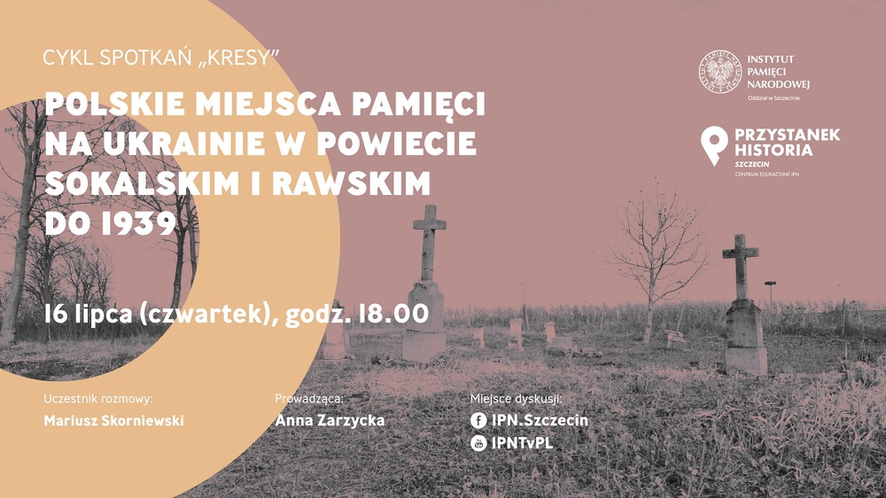 Na fanpage'u Facebook @IPN.Szczecin oraz YouTube IPNtvPL polecamy rozmowę online w ramach cyklu Kresy - „Polskie miejsca pamięci na Ukrainie w powiecie sokalskim i rawskim do 1939 r.”.