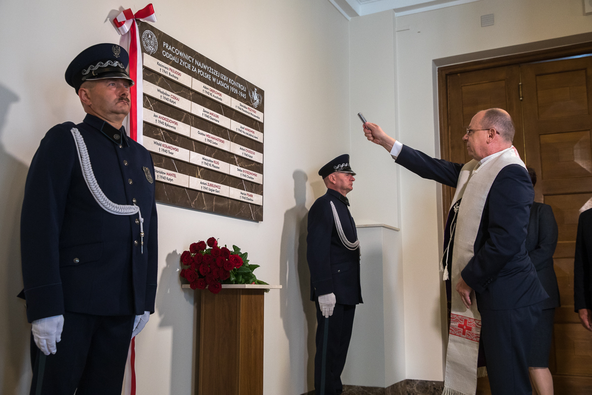 Podczas uroczystości historię powstania tablicy i uhonorowanych na niej pracowników Izby przedstawił Piotr Szubarczyk, doradca dyrektora Biura Organizacyjnego NIK. List od Prezydenta RP Andrzeja Dudy odczytała szefowa jego kancelarii Halina Szymańska. W uroczystości wziął udział także wnuk Marszałka Józefa Piłsudskiego Krzysztof Jaraczewski. Pod odsłoniętą Ścianą Pamięci kwiaty złożyli prezes NIK Marian Banaś wraz z Haliną Szymańską i Krzysztofem Jaraczewskim.