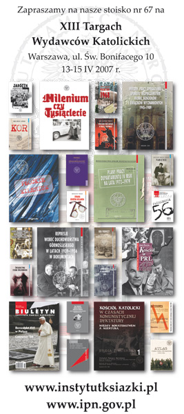 W dniach 13–15 kwietnia 2007 roku odbywają się w Warszawie, przy ul. Św. Bonifacego 10, XIII Targi Wydawców Katolickich. Po raz pierwszy w targach bierze udział Instytut Pamięci Narodowej – swoją ofertę wydawniczą prezentuje na stoisku nr 67.