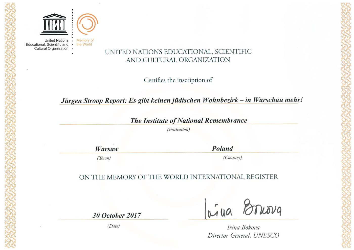 Raport Stroopa wpisany na Listę Światową Programu UNESCO „Pamięć Świata”