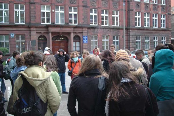 Najpierw członkowie Historycznego Klubu Turystycznego spotkali się przed budynkiem, w którym obecnie mieści się Wydział Biologii, Geografii i Oceanologii Uniwersytetu Gdańskiego, a przed wojną szkoła dla dziewcząt Victoria Schule, w której w pierwszych dniach II wojny światowej zorganizowano obóz przejściowy dla obywateli Gdańska polskiego pochodzenia, których nazwiska były umieszczone w Specjalnej Księdze Poszukiwanych, sporządzonej przez hitlerowców już w sierpniu 1939 roku.