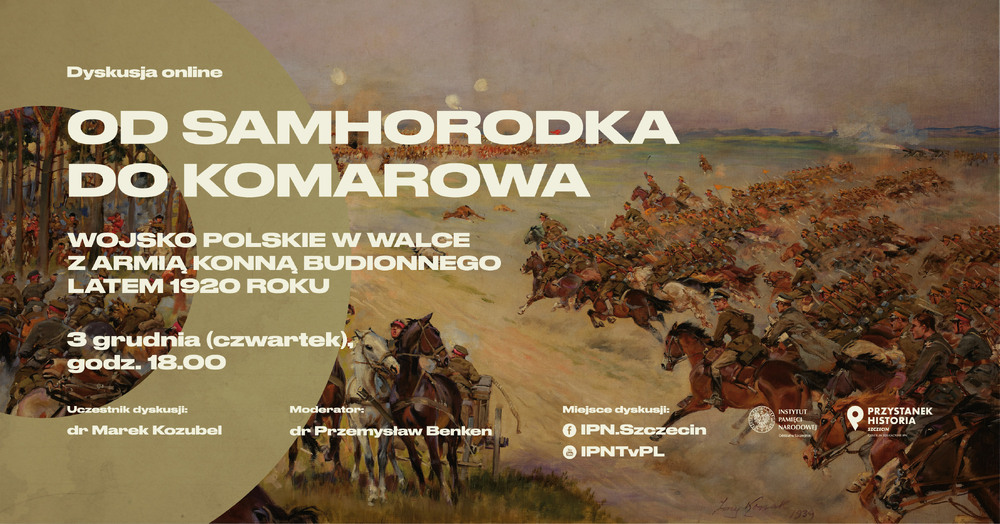 Na fanpage'u @IPN.Szczecin na Facebooku oraz YouTube IPNtvPL polecamy dyskusję online: „Od Samhorodka do Komarowa. Wojsko Polskie w walce z Armią Konną Budionnego latem 1920 r.” O bitwie pod Zadwórzem zwanej polskimi Termopilami, bohaterskiej obronie Lwowa i Zamościa oraz o ostatniej wielkiej bitwie kawalerii pod Komorowem rozmawiali: