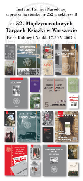 W dniach 17–20 maja 2007 roku odbywają się w Pałacu Kultury i Nauki w Warszawie 52. Międzynarodowe Targi Książki. Instytut Pamięci Narodowej prezentuje swoją ofertę wydawniczą na stoisku nr 252 w sektorze B.