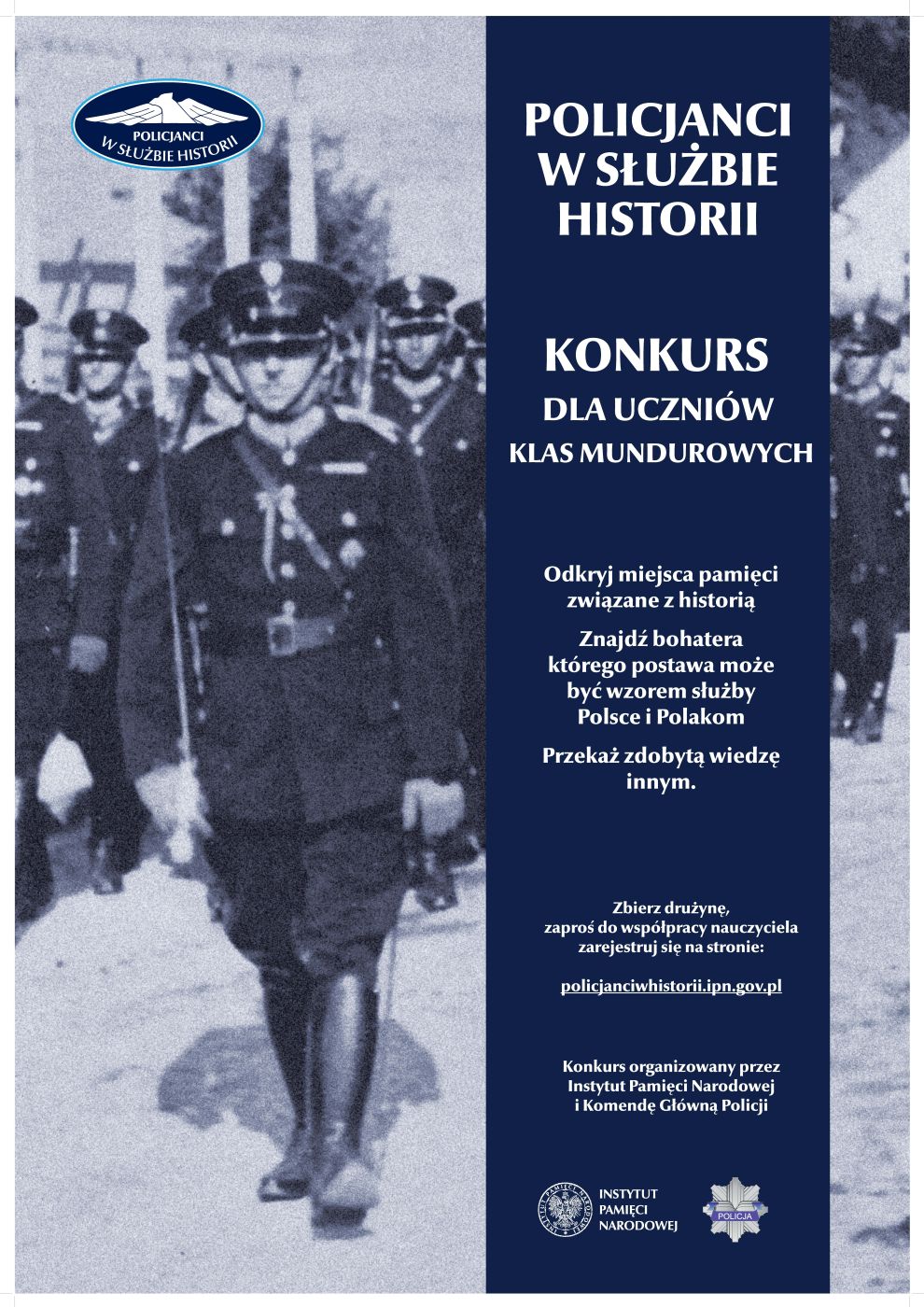 „Policjanci w służbie historii” – konkurs adresowany jest do uczniów klas mundurowych w ramach współpracy Instytutu Pamięci Narodowej z Komendą Główną Policji. Jego celem jest zainteresowanie uczniów najnowszą historią Polski ze szczególnym uwzględnieniem historii Policji w czasach II Rzeczpospolitej i II wojny światowej oraz jej wkładu w odzyskiwanie przez Polskę niepodległości i odbudowę Państwa Polskiego. W ramach zadań konkursowych uczniowie odkrywają miejsca pamięci związane z historią policji, sylwetki policjantów, których postawa może być wzorem służby Polsce i Polakom, oraz przekazują zdobytą wiedzę innym.