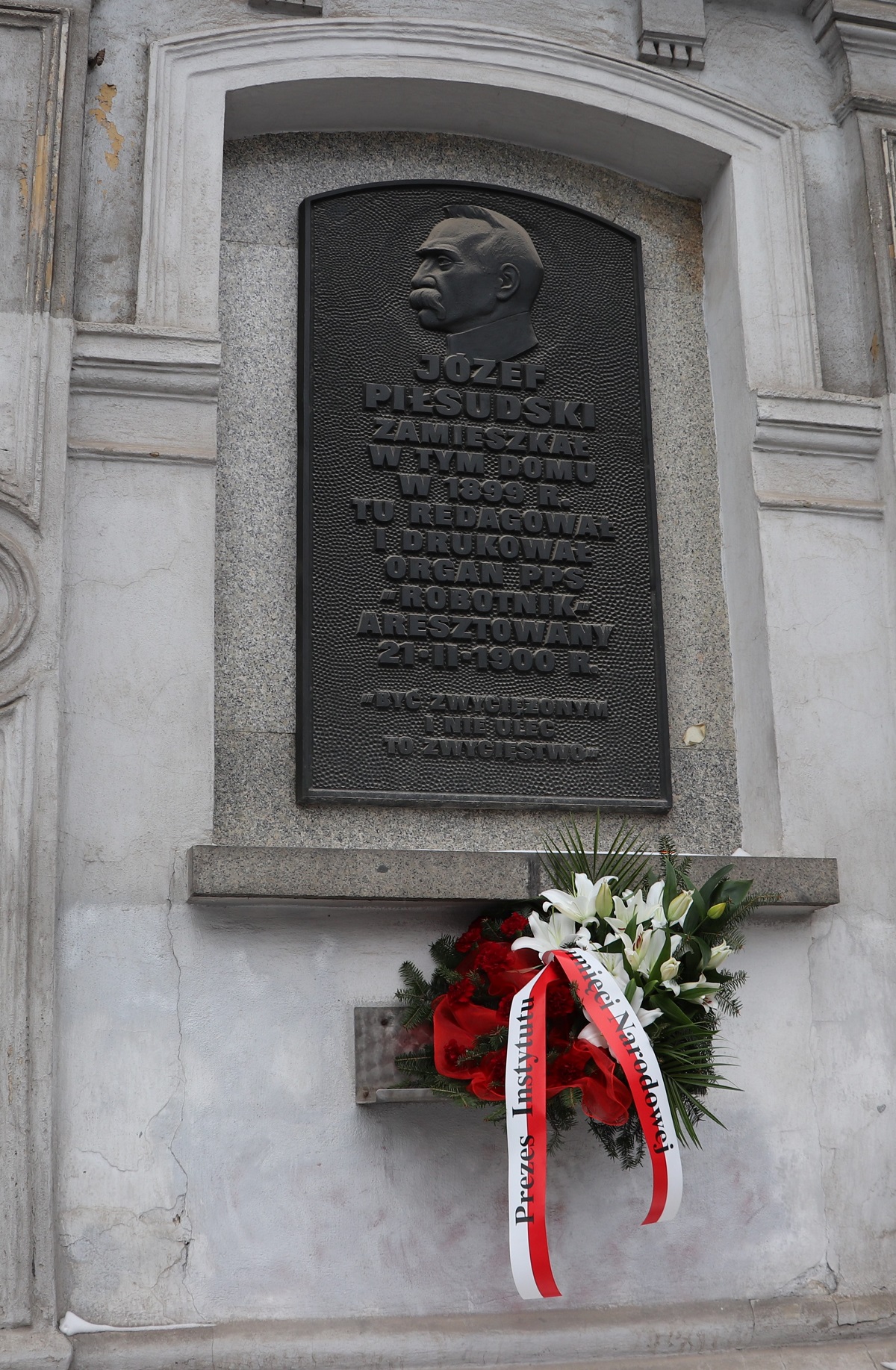 Przy okazji wizyty w Łodzi dr Jarosław Szarek – prezes IPN wraz z dr. hab. Dariuszem Rogutem – dyrektorem łódzkiego Oddziału IPN, złożyli kwiaty w miejscu jego aresztowania.