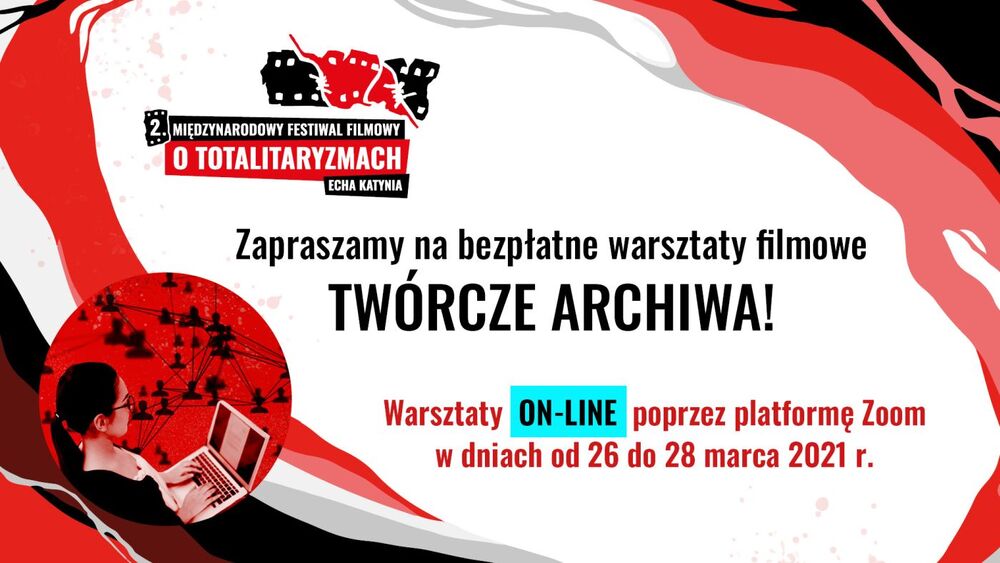 Warsztaty odbędą się on-line poprzez platformę Zoom w dniach od 26 marca (od 18:00) do 28 marca (do 18:00) – ok. 18 h warsztatowych, jako część II edycji Międzynarodowego Festiwalu Filmowego o Totalitaryzmach „Echa Katynia” – Echoes of Katyn International Film Festival. Podczas tego, organizowanego przez Instytut Pamięci Narodowej wydarzenia, które w wersji online odbędzie się w dniach 15–18 kwietnia 2021 będzie można zobaczyć wiele produkcji nagradzanych na najważniejszych światowych festiwalach filmowych, spotkać się z ich twórcami i innymi zaproszonymi gośćmi. Dla uczestników warsztatów szykujemy nie lada gratkę. Wybrane etiudy zrealizowane w trakcie warsztatów zostaną zaprezentowane na kanale IPNtv w serwisie YouTube w czasie festiwalu! Dla wszystkich uczestników przygotowaliśmy pakiety z upominkami. Liczba miejsc ograniczona!