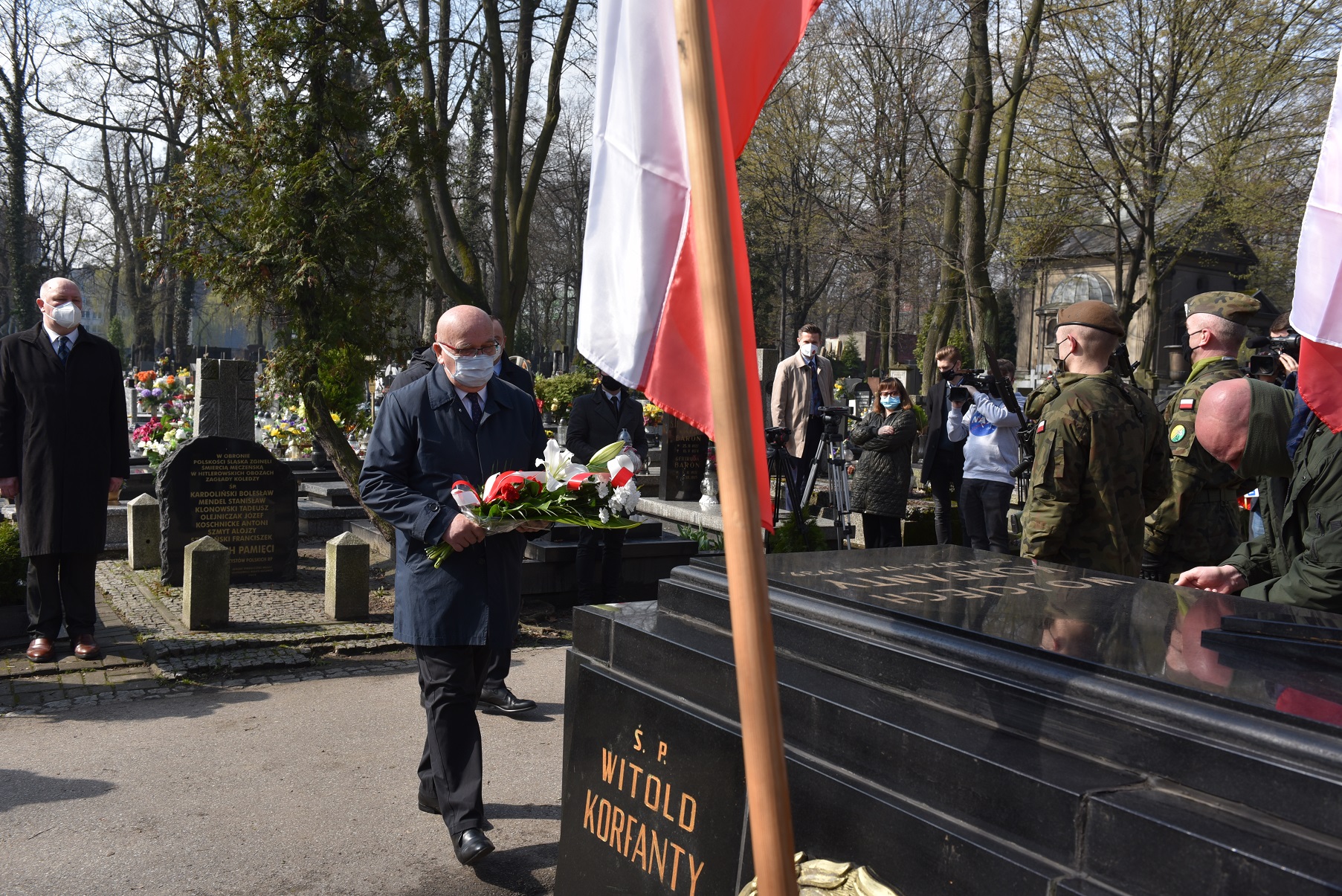 Na zakończenie obchodów delegacja IPN: dr Andrzej Sznajder, Ryszard Mozgol oraz Aleksandra Korol-Chudy złożyli kwiaty pod pomnikiem Wojciecha Korfantego znajdującym się na placu Sejmu Śląskiego.