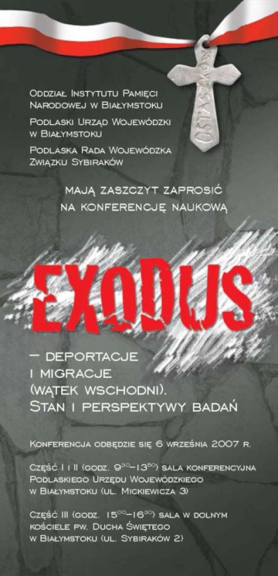 6 września 2007 r. w Białymstoku odbyła się konferencja naukowa „Exodus – deportacje i migracje (wątek wschodni). Stan i perspektywy badań”, zorganizowana przez Oddział IPN w Białymstoku przy współpracy z Podlaskim Urzędem Wojewódzkim oraz Podlaską Radą Wojewódzką Związku Sybiraków.
