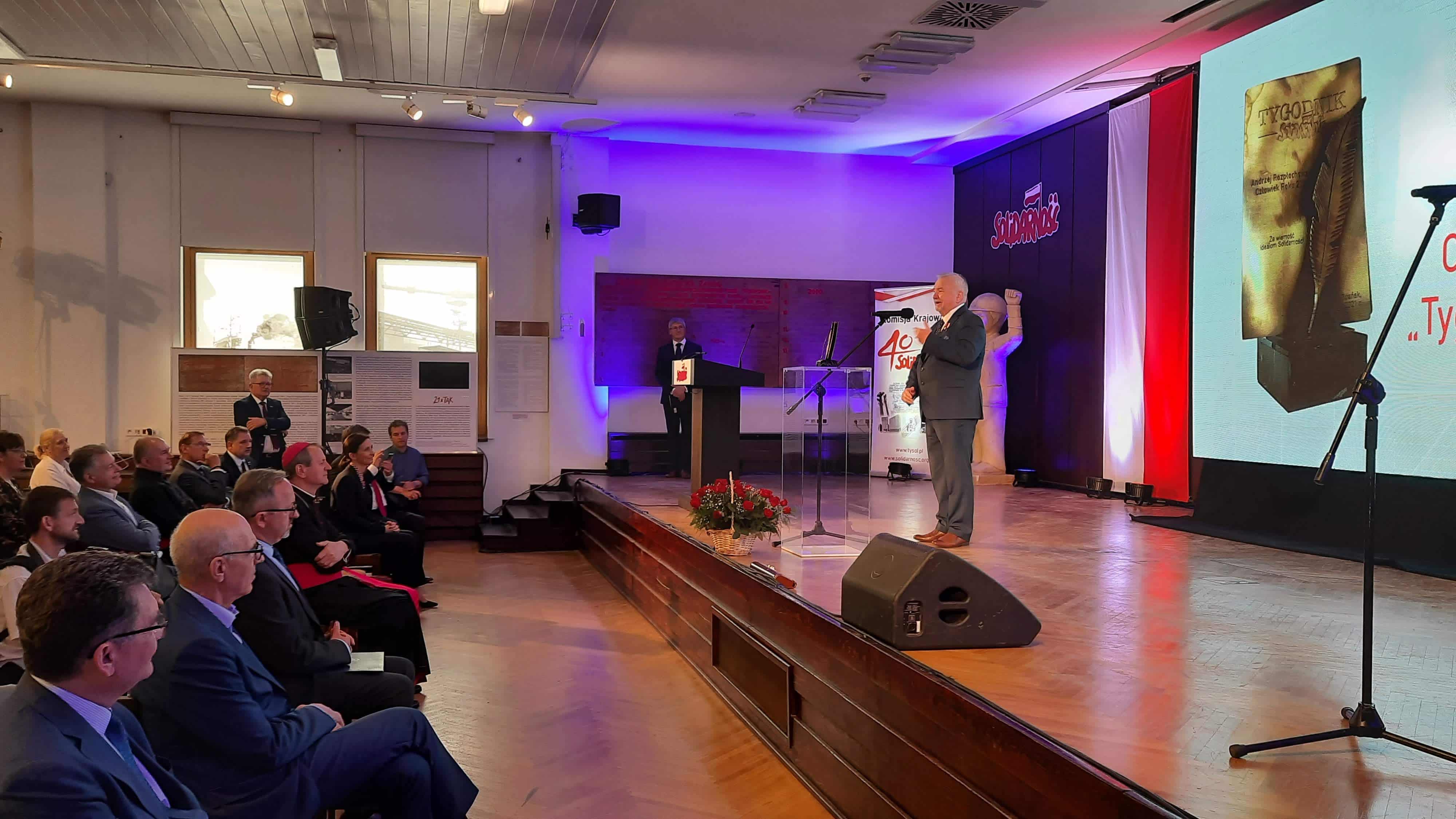 W pierwszej części gali miały miejsce wystąpienia i odczytanie listów, m.in. od Prezydenta RP Andrzeja Dudy. Głos zabrał przewodniczący NSZZ „Solidarność” Piotr Duda. Uroczystą laudację wygłosił Tadeusz Majchrowicz, zastępca przewodniczącego NSZZ „Solidarność”, a po niej przewodniczący NSZZ „Solidarność” Piotr Duda i red. naczelny „Tygodnika Solidarność” Michał Ossowski wręczyli Andrzejowi Rozpłochowskiemu nagrodę Człowieka Roku „Tygodnika Solidarność”.