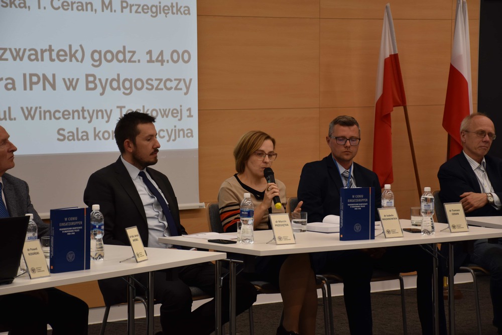 W siedzibie IPN Delagtury w Bydgoszczy odbyło się spotkanie promujące książkę „W cieniu Einsatzgruppen. Volksdeutscher Selbstschutz w okupowanej Polsce 1939–1940”. W spotkaniu udział wzięli autorzy: dr Izabela Mazanowska (IPN Bydgoszcz), dr Tomasz Ceran (IPN Bydgoszcz), dr Marcin Przegiętka (IPN Warszawa) oraz recenzenci prof. Piotr Madajczyk (ISP PAN Warszawa) i dr Jan Daniluk (Gdańsk). Spotkanie prowadził dr Paweł Kosiński (IPN Warszawa).