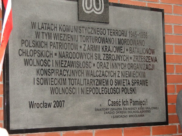 Uroczyste odsłonięcie tablicy Upamiętnienia Ofiar Terroru Komunistycznego w 68. rocznicę powołania Polskiego Państwa Podziemnego – Wrocław, 27 września 2007 r.